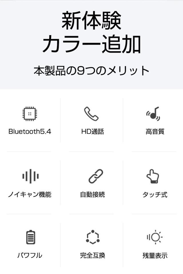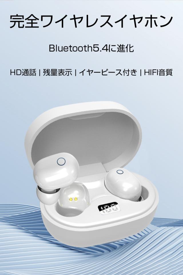 ワイヤレスヘッドセット Bluetooth5.4 イヤホン ワイヤレスイヤホン 自動ペアリング 自動ON/OFF 防水 防滴 両耳 TWS 左右分離型 Hi-Fi高音質 バッテリー残電量表示 LED付き 長時間待機 充電ケース付き 在宅勤務用 PSE認証済み 【PL保険加入済み製品・安心】