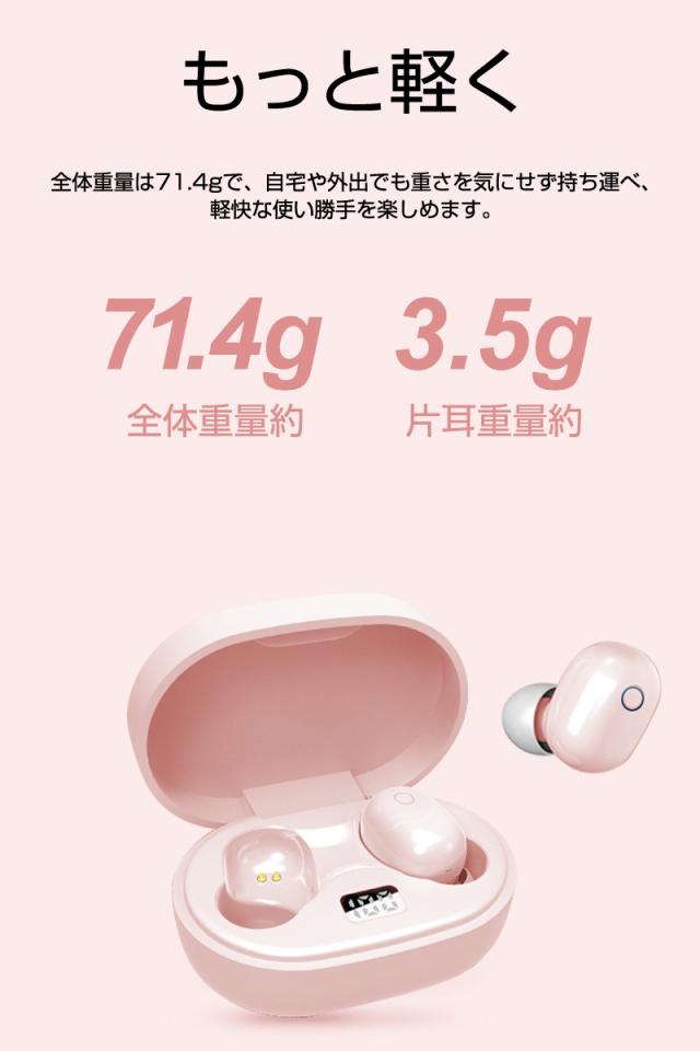 【極めて軽量 カナル型】もっと軽量化にしたデザイン、方イヤホンわずか4g、コインより小さくて市販タイプの半分ぐらいで、長時間装着しても耳が痛くない!耳の輪郭に完璧合致するカナル型設計で、耳としっかり噛み合います。その他ノイズリダクション技術を採用し、音声漏れることがありません。
