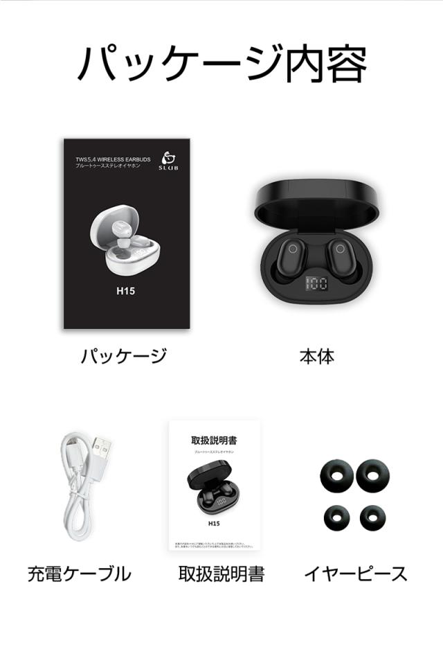 【パッケージ内容】イヤホン、充電&収納ケース、充電ケーブル、日本語取扱説明書