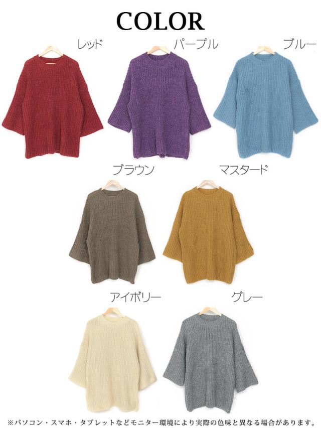 ☆身体のラインを拾いにくいシンプルシルエットでパンツやスカートとコーデしてもおしゃれな無地ニット♪