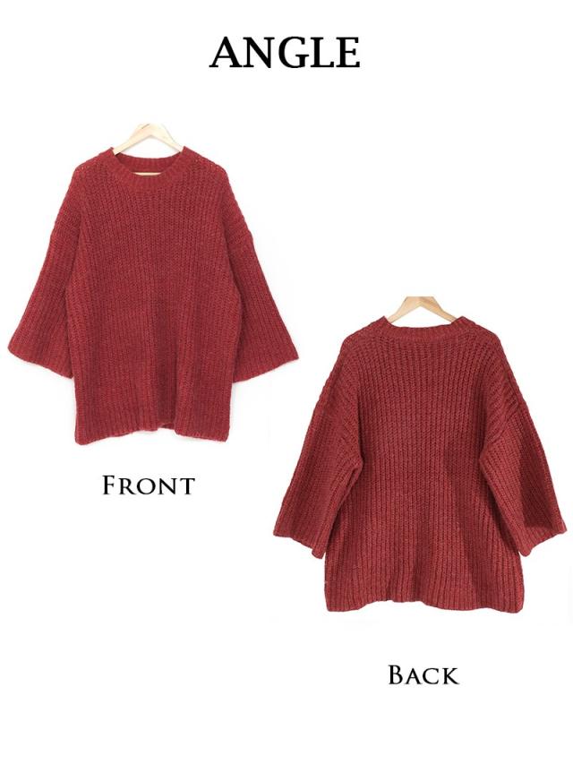 ☆太めの糸でざっくり編まれたニットは着心地◎なクルーネックセーターでカジュアルもフェミニンコーデにも合う長袖トップス♪
