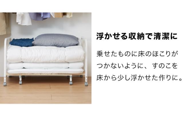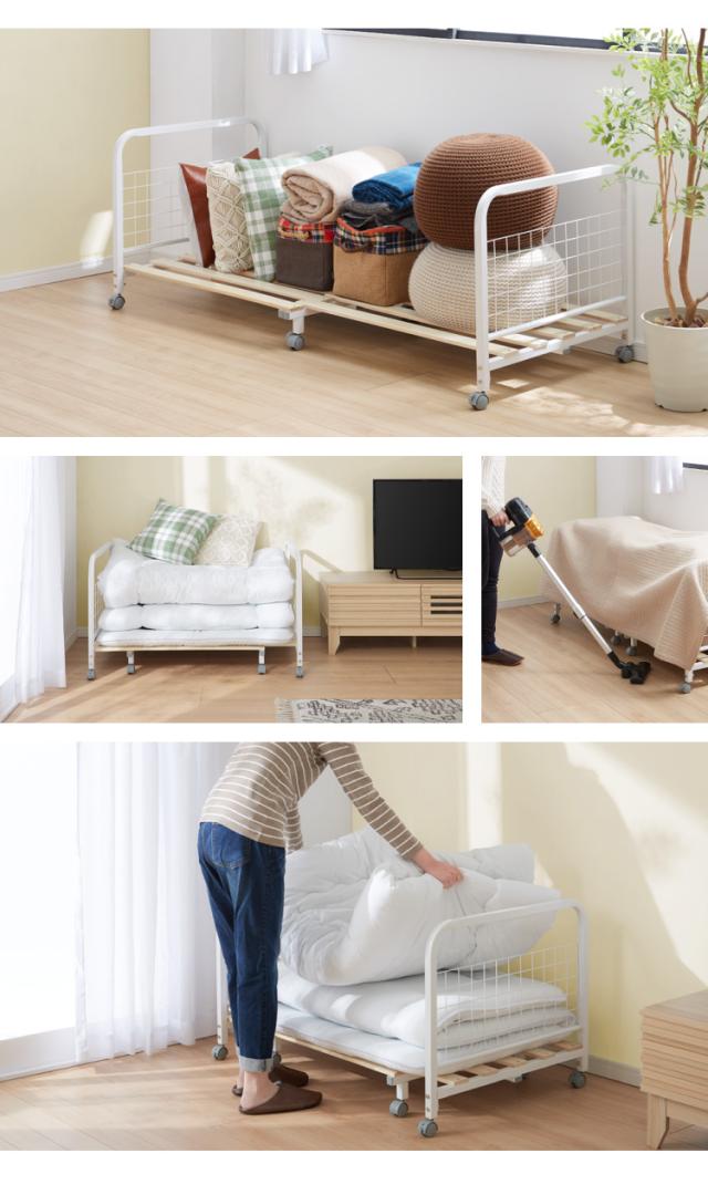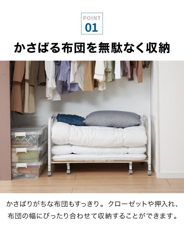 掃除の度に一つ一つ布団を運び出すのは面倒、キャスター付きなので楽に動かすことが出来てお掃除もはかどります。