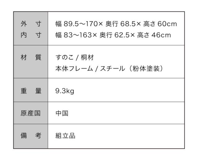 幅(外寸)89.5〜170×奥行68.5×高さ60cm