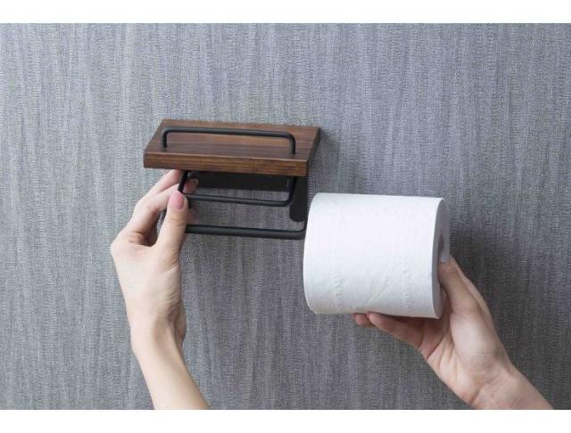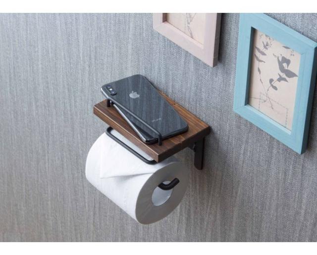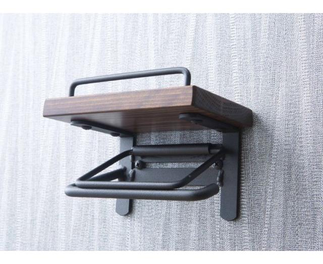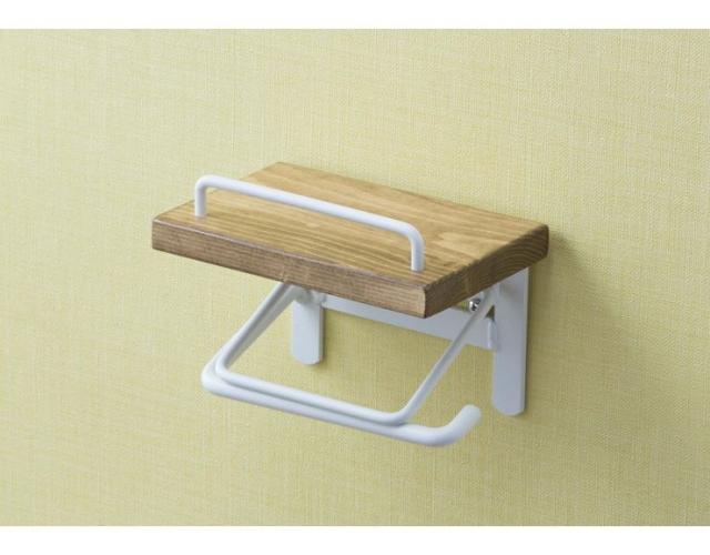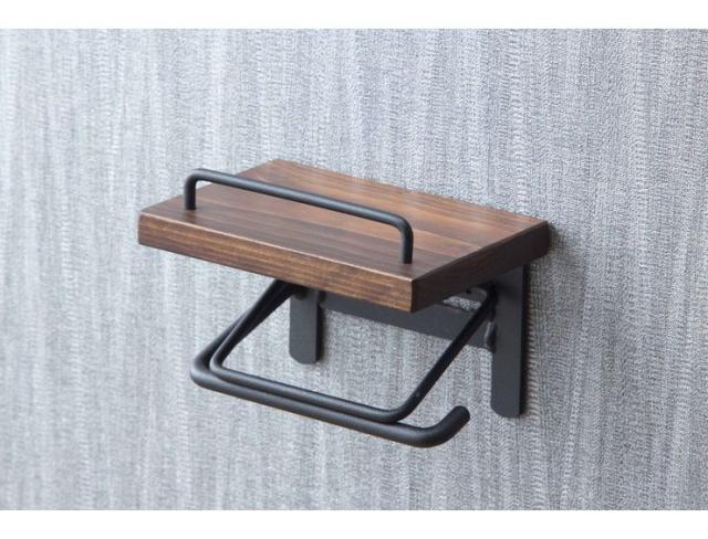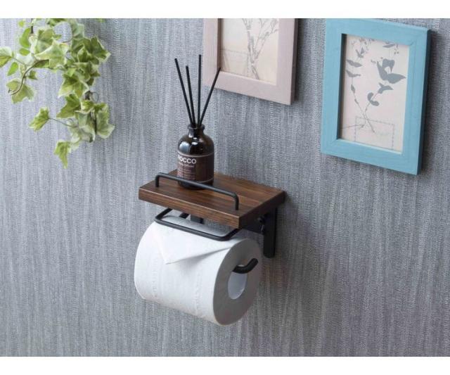 天然木とスチールを組み合わせたヴィンテージ風のトイレットペーパーホルダーです。