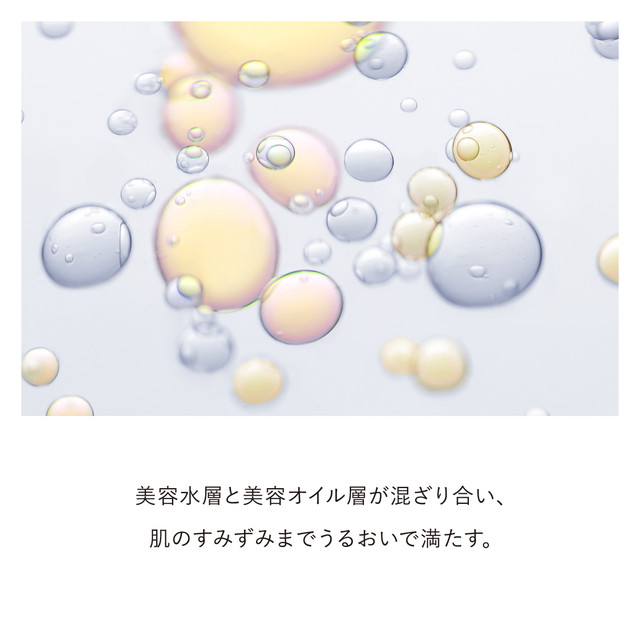 ○美容水層と美容オイル層が混ざり合い、メイクを崩さず肌のすみずみまでうるおいで満たします