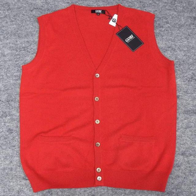 GOBI(ゴビ) カシミヤ100% Vネックベスト 前開き 赤/無地 モンゴル産 メール便可 GOBI-V955R