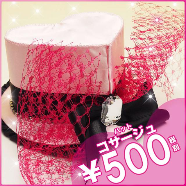 髪飾り 在庫限り 大特価 おしゃれなハートのシルクハット コサージュ ラインストーン リボン メッシュ ロリータファッション ピンク