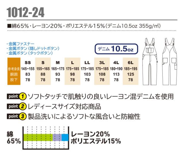 G.GROUND サロペット 1012-24 レディース メンズ デニム 作業服 作業着 SOWA