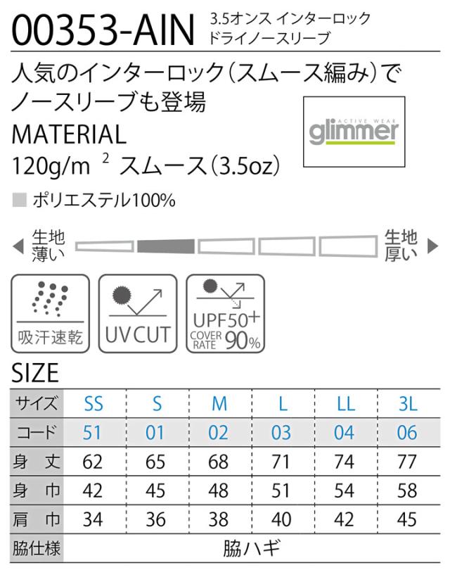 タンクトップ トムスブランド 00353-ain グリマー SS-3L 5色 3.5オンス 吸汗 速乾 ストレッチ レディース メンズ インターロックドライノースリーブ 作業服