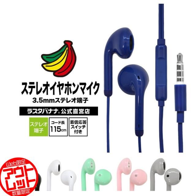 ■ラスタバナナ iPhone スマホ タブレット 3.5mmステレオ端子 ステレオイヤホンマイク 着信応答スイッチ付き
