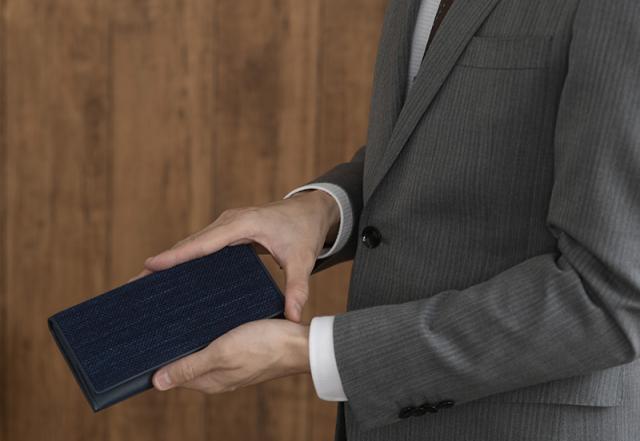 和服にも似合う和風の長財布 剣道着の素材が懐かしい