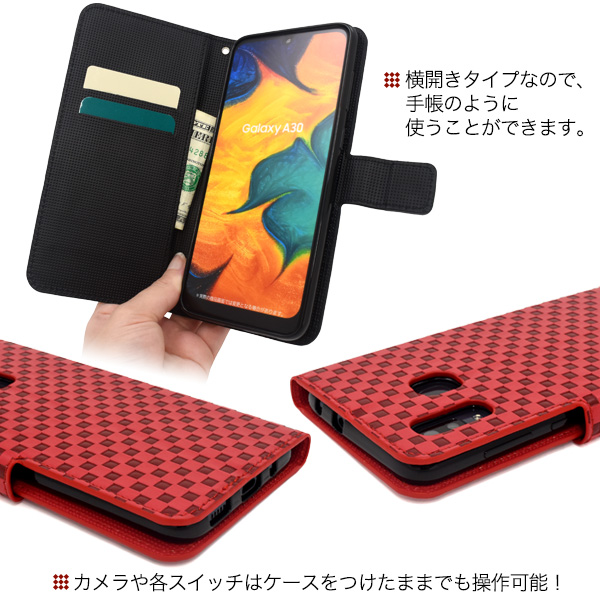 スマホケース Galaxy A30 SCV43 手帳型 市松模様 携帯ケース シンプル カジュアル 装着簡単 和柄 スマホカバー お洒落 和風 携帯カバー 和模様 おしゃれ スタイリッシュ スタンダード オーソドックス シンプル かわいい au携帯カバー スマートフォンケース