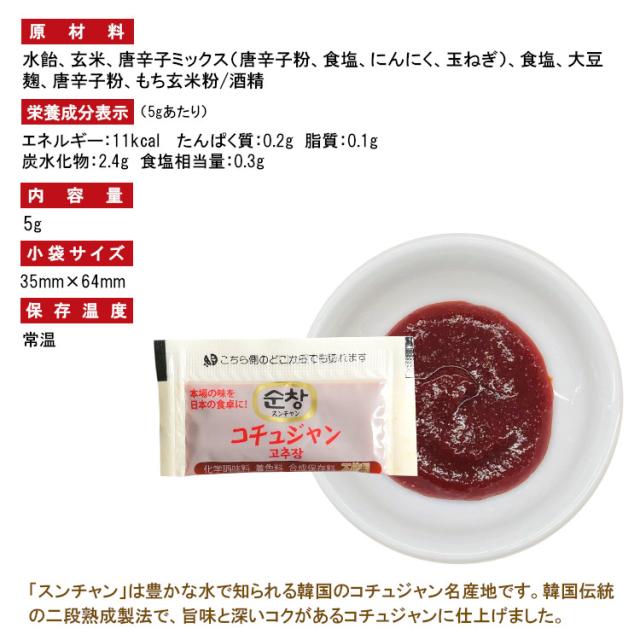 スンチャン コチュジャン 5g×500/苦椒醤 唐辛子味噌 宅配便 送料無料 小袋 使いきり 調味料 携帯用 アウトドア お弁当 イベント 和食 洋食 中華 肉料理 野菜料理 魚料理 韓国 焼肉 小分け テイクアウト こわけや
