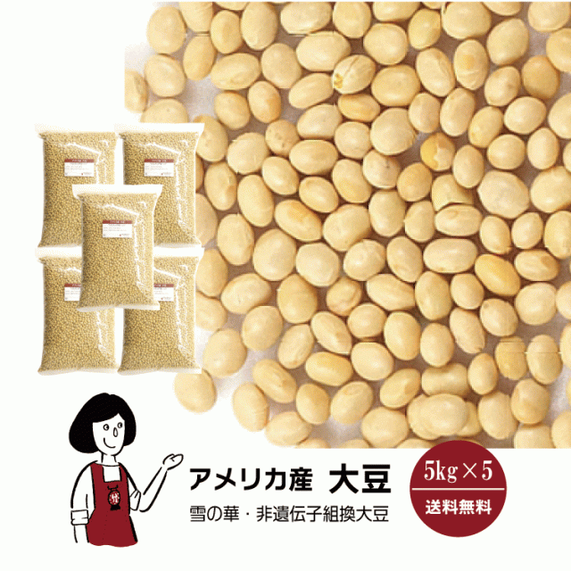 アメリカ産大豆 5kg×5〔チャック付〕 宅配便 送料無料 チャック付 大豆 インディアナ産 白目大豆 バラエティー大豆 雪の華 非遺伝子組換 乾燥豆 こわけや