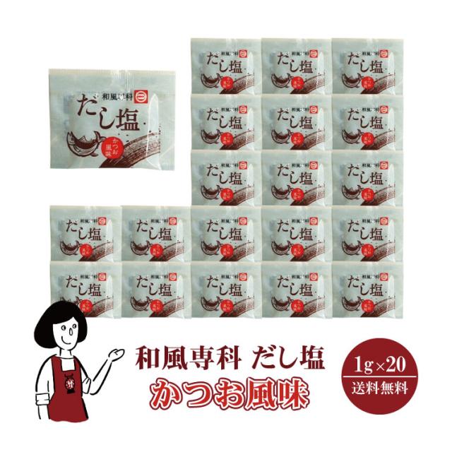 マルニ 和風専科 だし塩(かつお風味)1g×20袋 メール便 送料無料 小袋 使いきり 調味料 塩 だし塩 かつお かつおだし アウトドア お弁当 イベント 和食 天ぷら 小分け テイクアウト こわけや