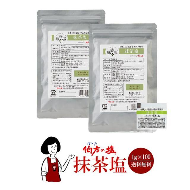 伯方の塩 抹茶塩 1g×100袋 メール便 送料無料 小袋 使いきり 調味料 塩 アウトドア お弁当 イベント 和食 洋食 肉料理 野菜料理 魚料理 BQQ 小分け テイクアウト こわけや