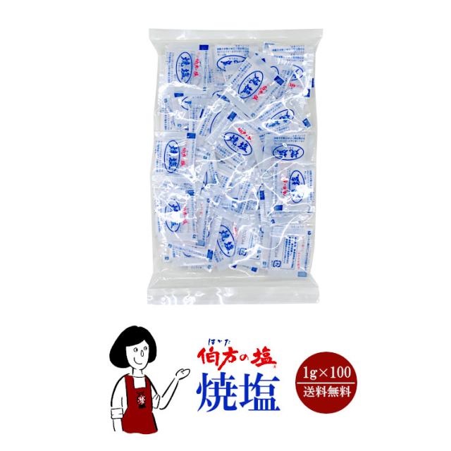 伯方の塩 焼塩 1g×100袋 メール便 送料無料 小袋 使いきり 調味料 塩 アウトドア お弁当 イベント 和食 洋食 肉料理 野菜料理 魚料理 BQQ 小分け テイクアウト こわけや