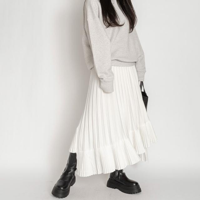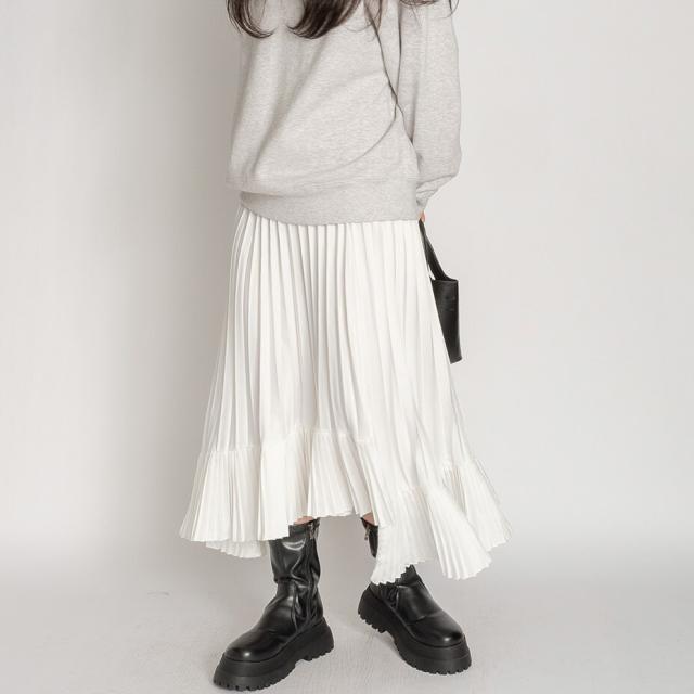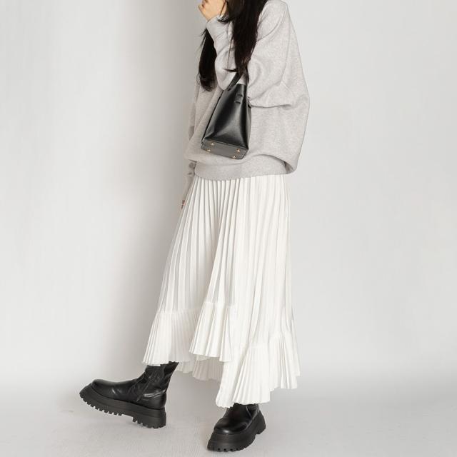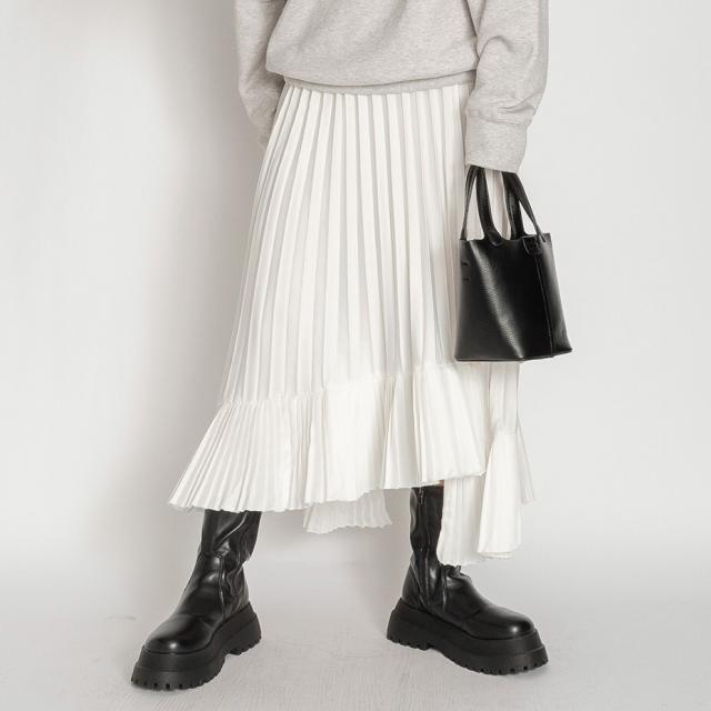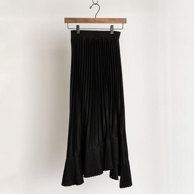 アシンメトリー フレア ロング ヘムプリーツ スカート