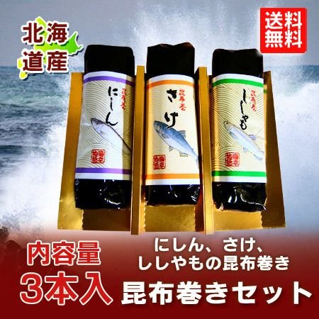 昆布巻き 送料無料 昆布巻 昆布巻き 鰊 / 昆布巻き 鮭 / 昆布巻き ししゃも 昆布巻き 3本セット 魚介類 水産加工品 セット 詰め合わせ 加工品 惣菜 こんぶまき 御歳暮 お歳暮