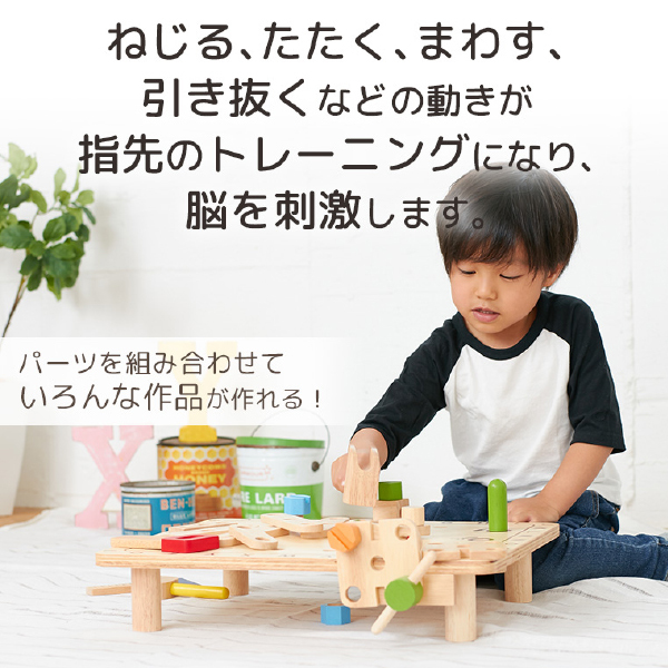 ネジを回す単純な遊びから、アルファベットや乗り物など様々な形を作る高度な遊びまで楽しめ、お子様の創造力や好奇心を育み、指先の発達も促します。
