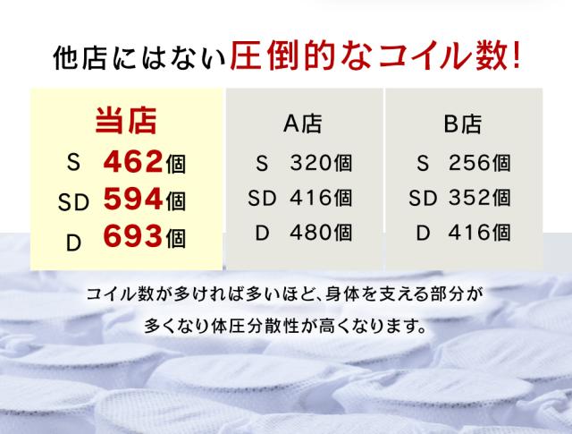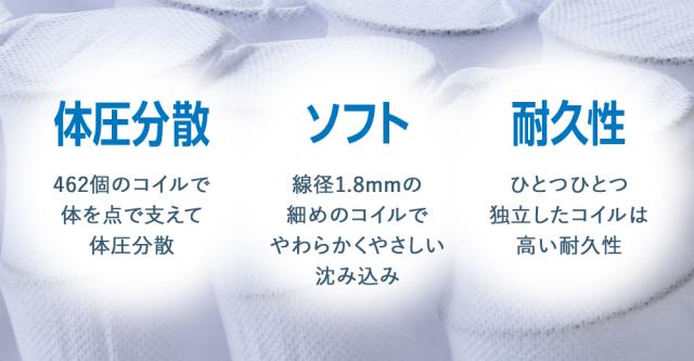 594個のコイルで耐圧分散性が高く、安定した寝心地を実現。