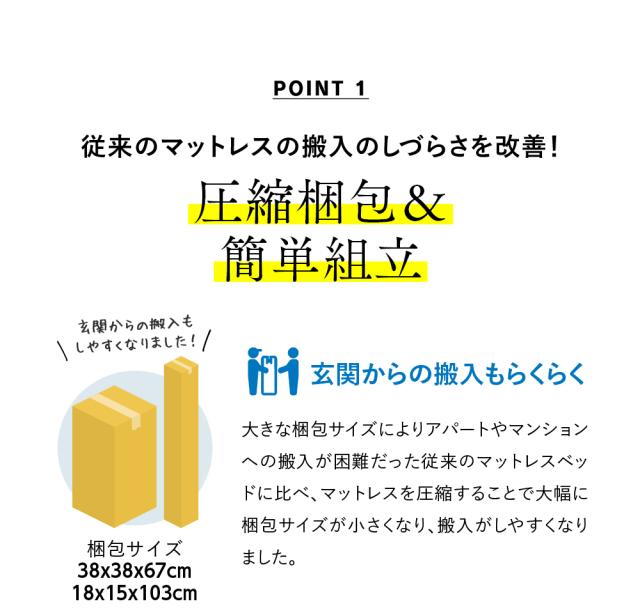 アパートやマンションへの搬入が困難だった従来のマットレスに比べ、