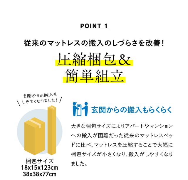 アパートやマンションへの搬入が困難だった従来のマットレスに比べ、