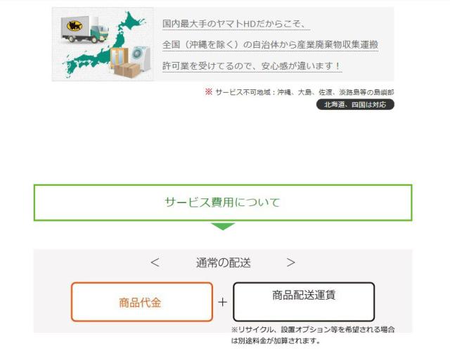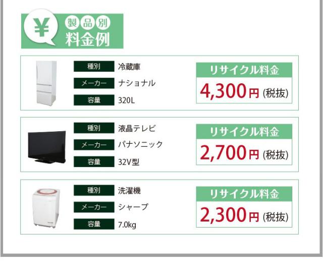 Q. リサイクル料金がいくらかかるのですか? A. リサイクル料金は、メーカーごとや製品のサイズなどによって変わります。 ご自宅の製品を確認し、RKC(一般 財団法人 家電製品協会 家電リサイクル券センター) にてご確認ください。 【料金例】●洗濯機 シャープ 2300円(税抜)●冷蔵庫 ナショナル 320L 4300円 ※リサイクルサポート料金は「リサイクル料金」+「配送料(引取り商品分)」の合計です。 Q. 10年以上も前の製品だったり、壊れていたりしても、引取していただけるのでしょうか? A. 損傷が著しい場合は、引取できない場合があります。 Q. 大きな業務用の冷蔵庫も引取できますか? A. 当サービスは、ご家庭で使われている家電リサイクル製品のみが対象となります。 業務用製品は、産業廃棄物 につき、運搬することができません。 Q. テレビを購入しましたが、洗濯機の引取はできますか? A. 申し訳ございませんが、ご購入された製品と異なる家電リサイクル製品はお受けできません。 Q. 時間指定は可能ですか? A. 午前中 / 12〜15時 / 15〜18時 / 18時〜21時 で可能です。 (エリアによっては対応できない場合がございます) Q. 購入時にリサイクルを申し込みましたが、キャンセルはできますか? A. キャンセルは可能です。 キャンセルをご希望される場合は当店までお電話ください。TEL:050-1185-0303 (リサイクル券発券後はサービ ス料880円は御返金ができません。ご了承ください) |