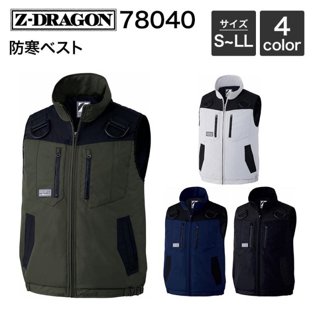 防寒ベスト (秋冬) 自重堂 Z-DRAGON 78040 (表地/ポリエステル85% 綿15% 別生地/コーデュラ ナイロン100% 裏地/ポリエステルタフタ 中綿/100gキルト) S・M・L ・LL