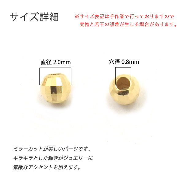 アクセサリーパーツ K18 ライトミラーボール 2.0mm 1個 バラ売り 金18 パーツ 手作りアクセサリー 素材 手芸 スペーサー ネックレス ブレスレット ピアス メタルビーズ メタルパーツ