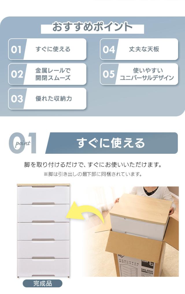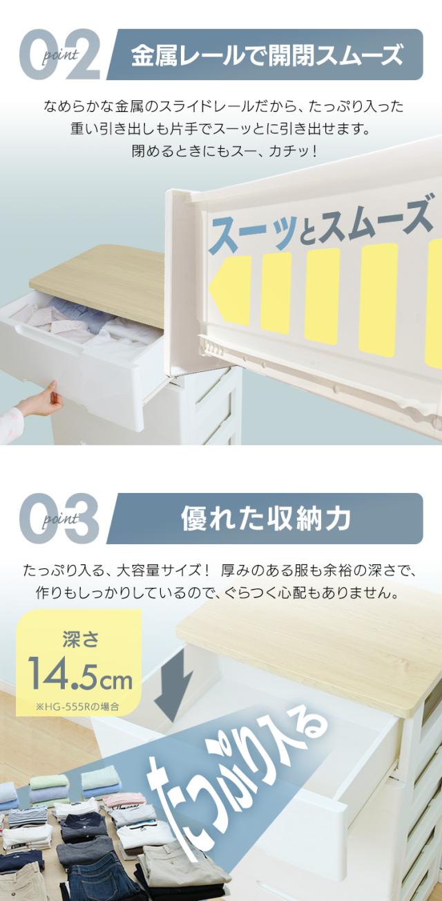 チェスト 5段 アイリスオーヤマ 幅56 奥行41.5 完成品 プラスチック 木天板 開閉スムーズ 収納ケース 衣装ケース 引き出し 衣類 クローゼット 押入れ収納 リビング ランドリー収納 引出収納 チェストタンス ウッドトップチェスト HG-555 *