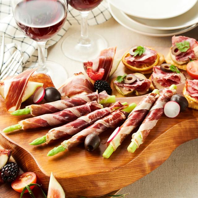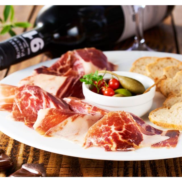 イベリコベジョータ30か月熟成生ハム・生ハムはスペインの高級食材のイベリコ豚を30ヶ月間熟成しました。チーズのような味わいで他にはない生ハムになっております。イベリコ豚の中でも上位ランク【ベジョータ】を使用した生ハムです。最高でも2年熟成の生ハムを更に半年間熟成させ、おいしさを追求した商品です。一枚一枚フィルムではがしやすくしておりますので、食べるのに非常に便利です。セラーノ18ヶ月熟成セラーノスペイン産の生ハム 通常の熟成が6か月のところを3倍の18か月熟成にしました。 長期熟成の証、グランレゼルバという称号ももらった商品になっております。