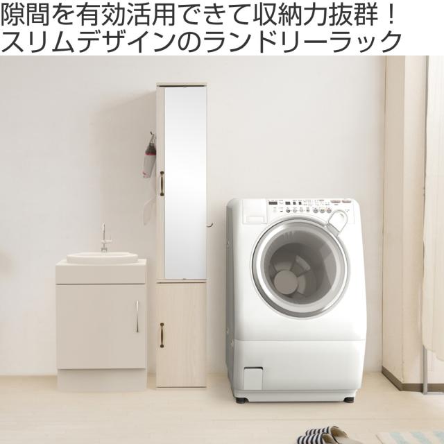 ランドリーラック 幅27cm スリム ミラー付 ( ランドリー収納 隙間収納 ランドリーボックス 家具 収納 タオル収納 おしゃれ すきま収納 衣類収納 ランドリーチェスト 引き出し ミラー 姿見 幅27 )