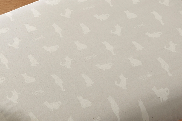 グレーの生地に白猫のシルエットがアイロン掛けを楽しくしてくれます。ちょっと憂鬱な時も気分が上がるかも。
