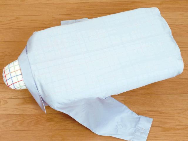 シャツを台に着せかけて、後ろ身ごろも一気にアイロン掛けができます。