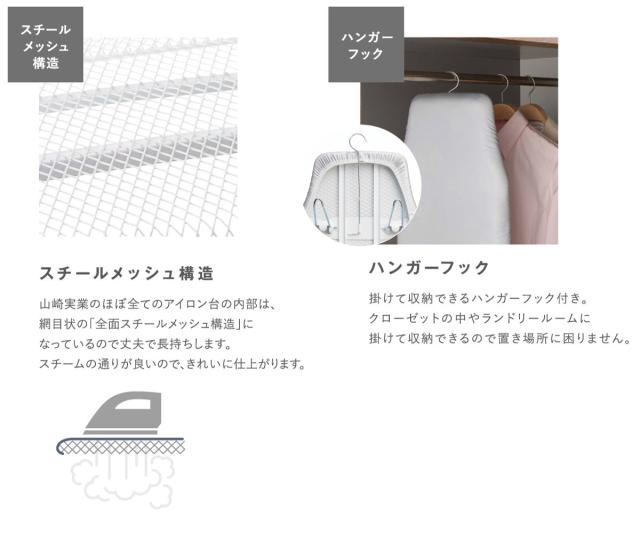 本体は大変丈夫なスチール製で熱による歪みなどが生じにくいです。また、メッシュ構造なのでスチームの通りがよく、パリッときれいに仕上がります。