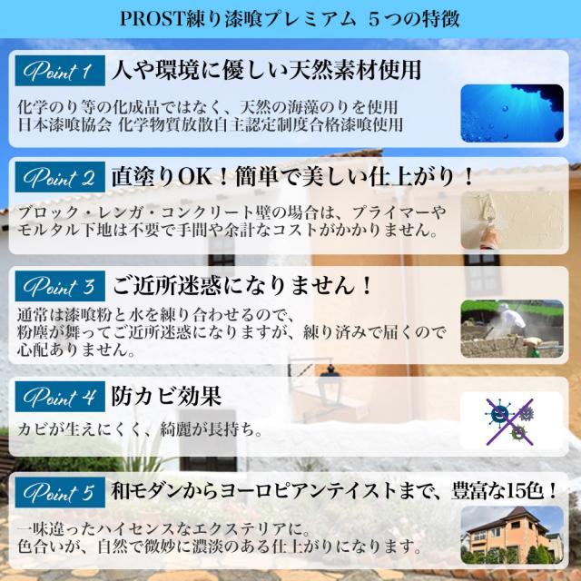 送料無料!簡単!外壁用練り漆喰プレミアム 全15色 4kg(畳1枚分 約1.65m2)/PROST 練済み漆喰 日本製 左官 塗り壁 漆喰 ペイント 外壁用 漆喰