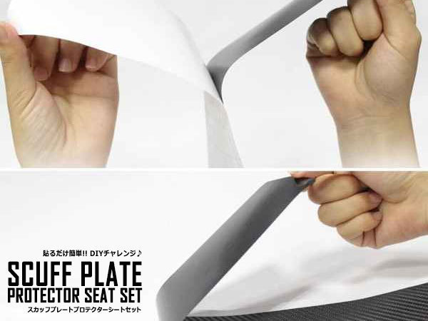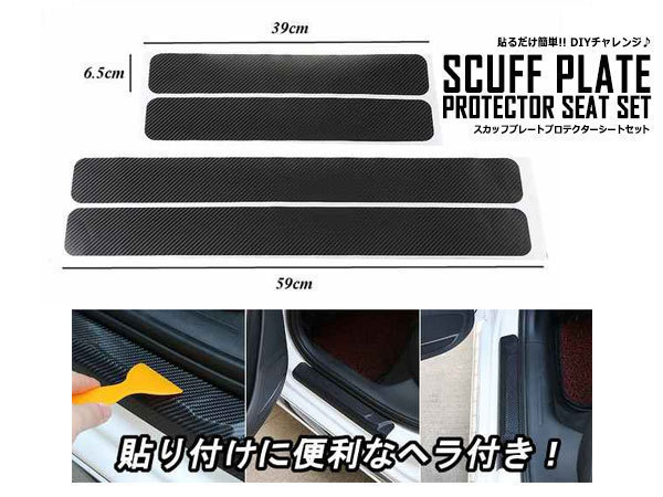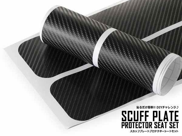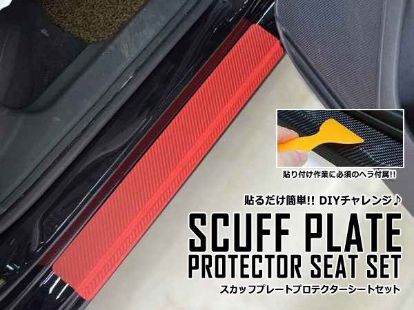 スカッフプレート ステップガード シール ステッカー 4枚セット [カーボン調] [レッド] 保護 汎用 サイドステップ 外装 内装 送料無料