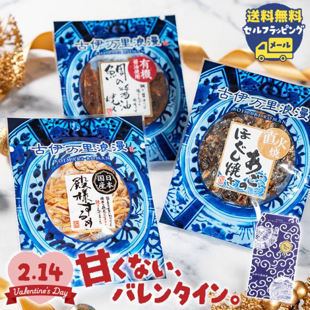 甘くない バレンタイン おつまみ プチパック3点 セルフラッピング用 メール便 おつまみセット ギフト プチギフト プレゼント プチ お礼 誕生日 退職祝い 酒のつまみ 珍味 つまみ 高級 日本酒 ビール 酒の肴 食品 食べ物 グルメ 海鮮 男性 父の日 送料無料 古伊万里浪漫