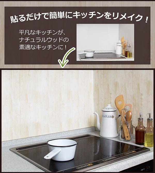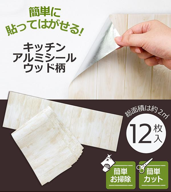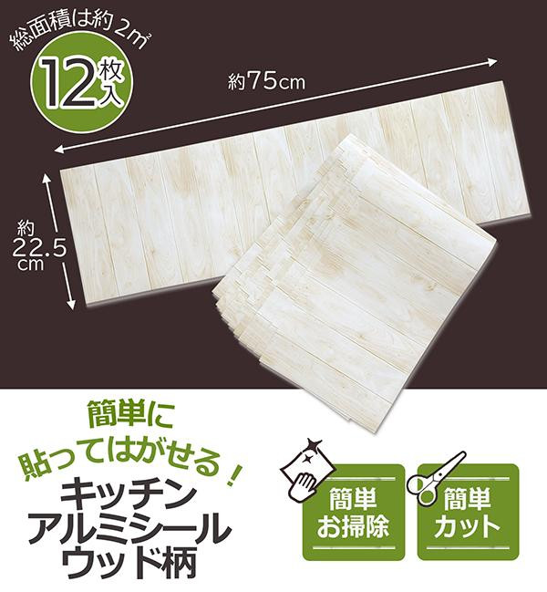 簡単リフォーム プチリフォーム ウォールステッカー ホワイトベージュ 木目 キッチンアルミシール ウッド柄 12枚入り
