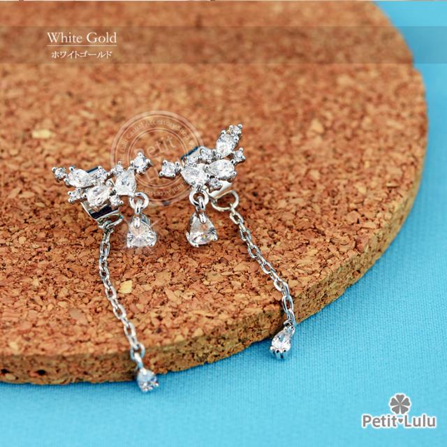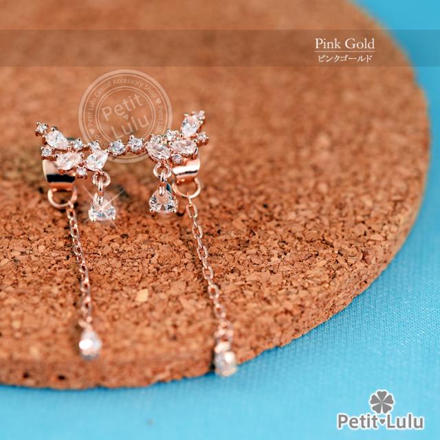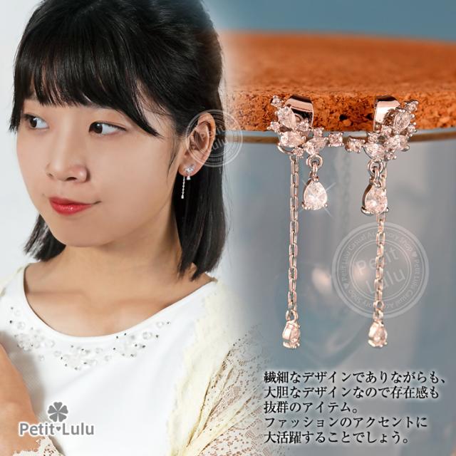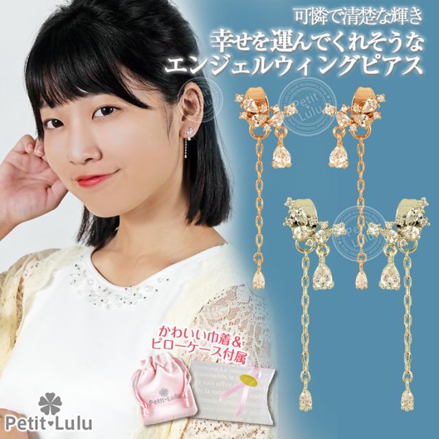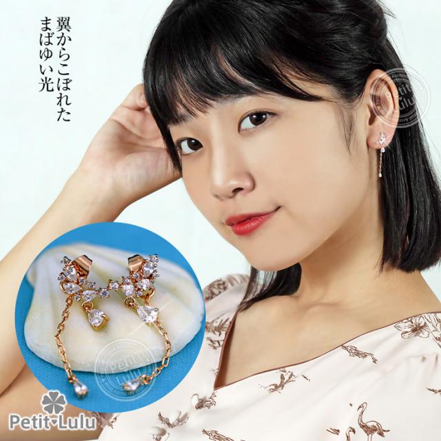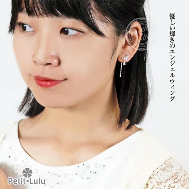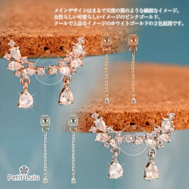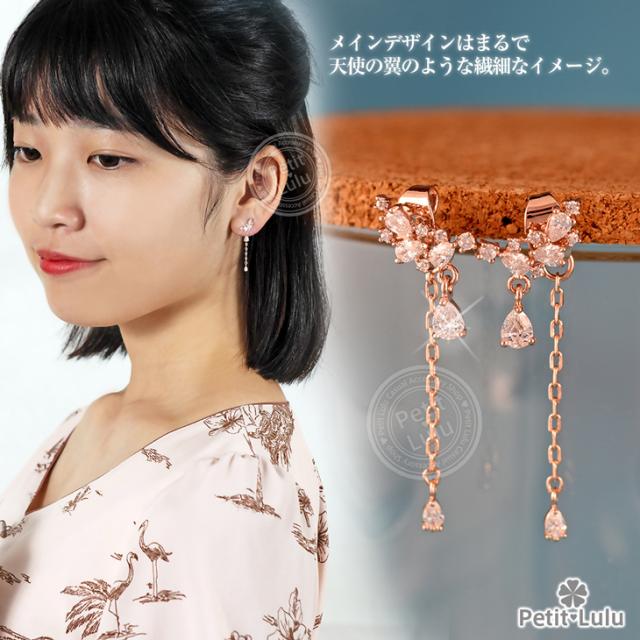 ピアス レディース AAA級 ダイヤモンドCZ フリンジ ビジュー バックキャッチ フープ 揺れる 天使の羽 しずく 18KRGP 925銀 レディース アクセサリー