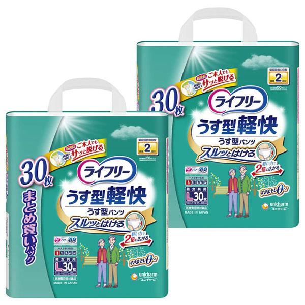 2個セット ライフリー うす型軽快パンツ L 30マイ ユニ・チャーム おむつ 薄型 Lサイズ パンツタイプ 大人用 unicharm シニア 外出 セット 送料無料