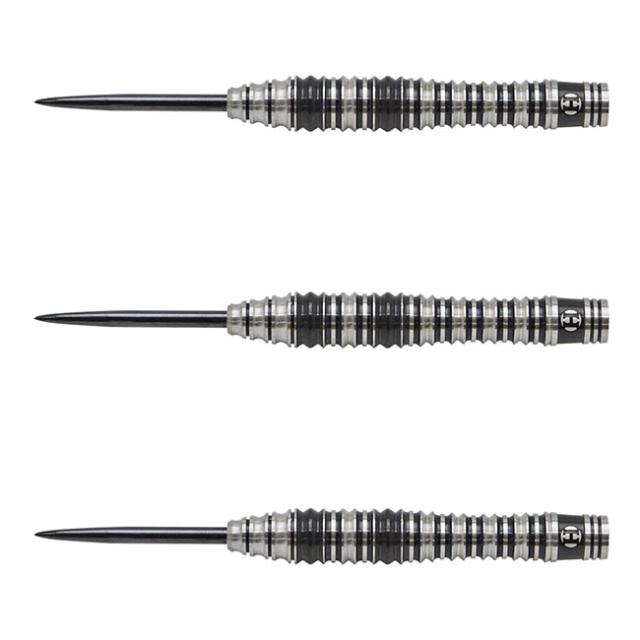 バレルエンド寄りに配置されたくぼみでグリップ位置を把握しやすく、前重心の設定で安定したスローイングが可能です。