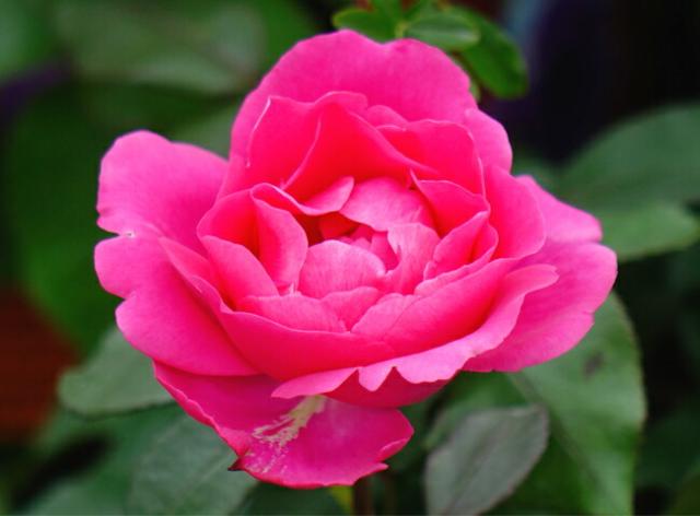 | 花色・大きさ・花形 | 濃いローズピンク・大輪咲き(11cm位)・波状弁抱え咲き(30〜45枚) |