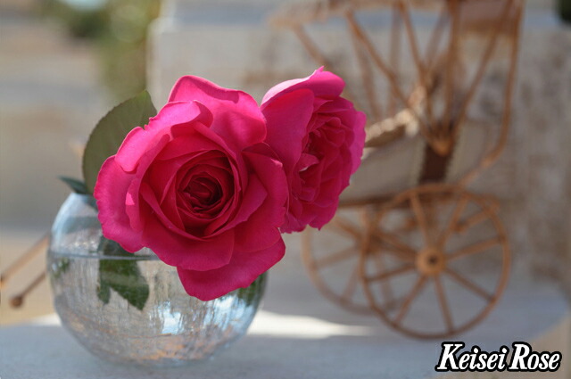 ハイブリッド・ティーローズ系のバラは四季咲き、大輪系。一茎に一輪咲かせて花の見事さを楽しみます。