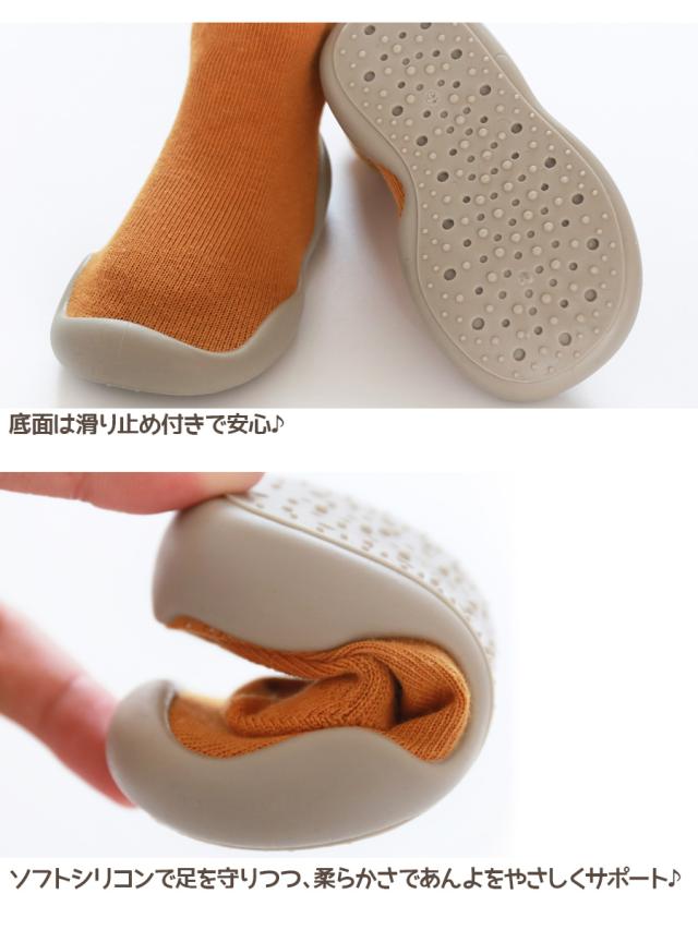 ソックスとシューズをドッキングした独特のフォルムが赤ちゃんの足をしっかりサポート!