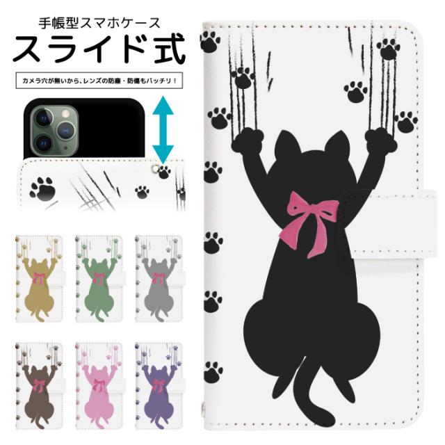 スマホケース 手帳型 全機種対応 スライド式 手帳型ケース iPhone 16e SE3 13 13mini 12 12Pro 12mini SE2 ケース アイフォン スマホカバー プリント 手帳 カバー スマホ 携帯ケース 携帯カバー ひっかき猫 携帯カバー dslide013