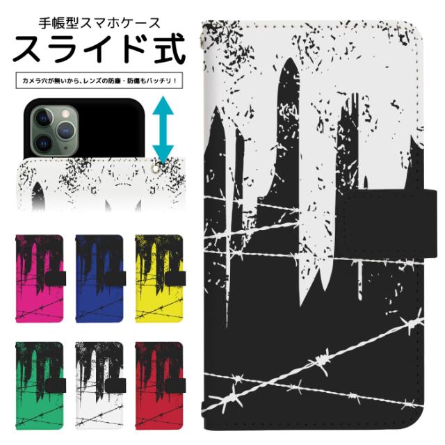 スマホケース 手帳型 全機種対応 スライド式 手帳型ケース iPhone 17e 16e SE3 13 13mini 12 12Pro 12mini SE2 ケース アイフォン スマホカバー プリント 手帳 カバー スマホ 携帯ケース 携帯カバー 有刺鉄線 携帯カバー dslide142