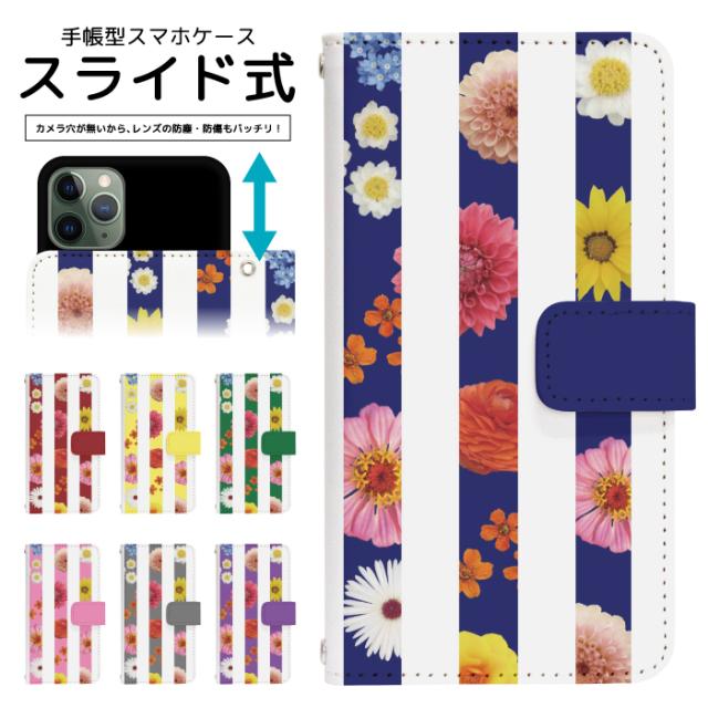 スマホケース 手帳型 全機種対応 スライド式 手帳型ケース iPhone 16e SE3 13 13mini 12 12Pro 12mini SE2 ケース アイフォン スマホカバー プリント 手帳 カバー スマホ 携帯ケース 携帯カバー フラワーボーダー 携帯カバー dslide224