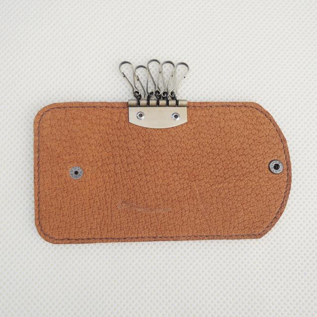 【使い込むほどに革の風合いを楽しめるイノシシ革のキーケース】車の鍵、家の鍵、ロッカーの鍵など、鍵を一つに収納できるキーケースです。5連のキーフックで、たくさんの鍵を取り付けられるので、あちこちとどこかへいってしまう心配もありません。シンプルなデザインで飽きがなく、開閉もホック式で簡単です。